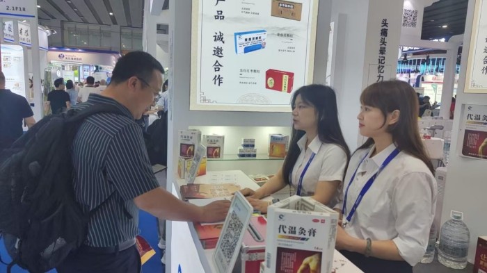 展会现场,富兴飞鸽药业主推的黄金单品“代温灸膏”吸引了大批参展观众驻足体验。该产品融合传统灸法与现代透皮技术,以“温经通络、散寒镇痛”的功效,成为中医特色灸疗领域的热门之选。此外,特色产品矩阵同样表现亮眼:气血肾不虚的“三胶颗粒”、增强免疫的“参林健体粉”、呵护胃肠的“胃疡灵颗粒”以及女性调经佳品“红枣当归颗粒”,凭借精准的定位与显著疗效,赢得众多经销商咨询洽谈。